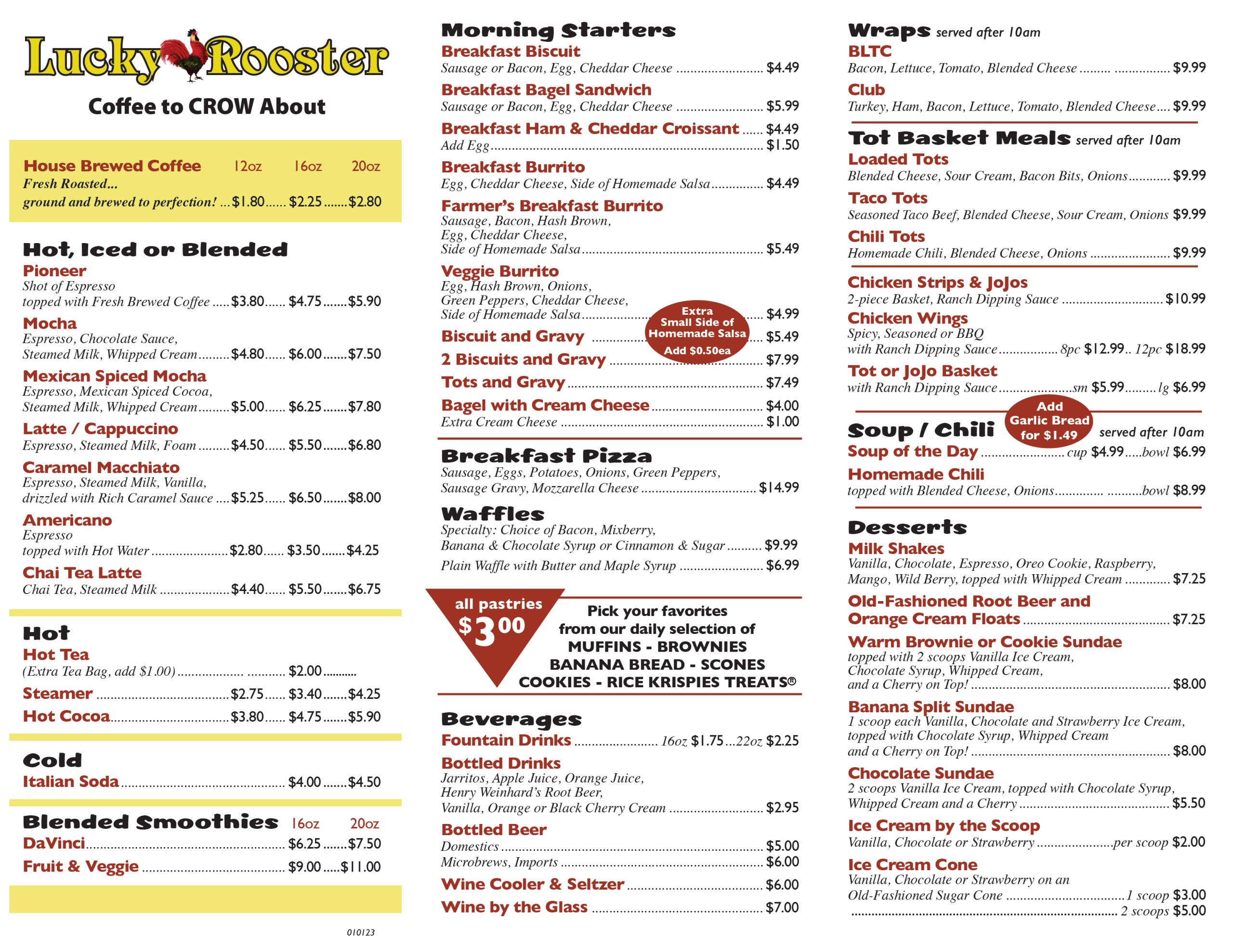 Indulge in the rich flavors of our house-brewed coffee and freshly made breakfast treats. Visit Lucky Rooster Coffee today or place your order online for a delightful experience that will brighten your day!