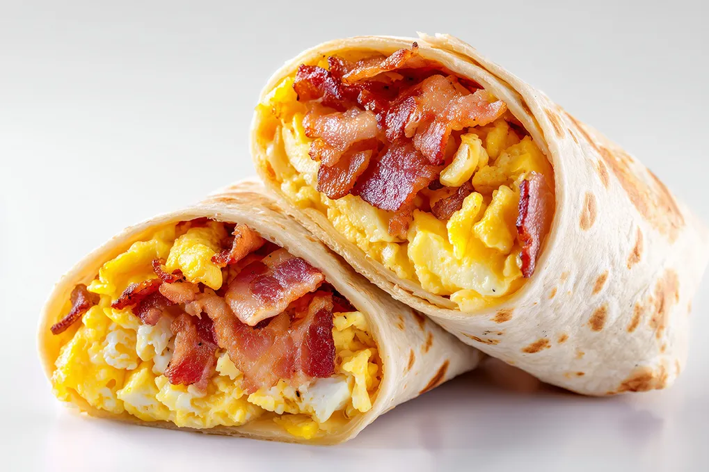A hearty burrito filled with eggs, cheese, and your choice of sausage or bacon.
